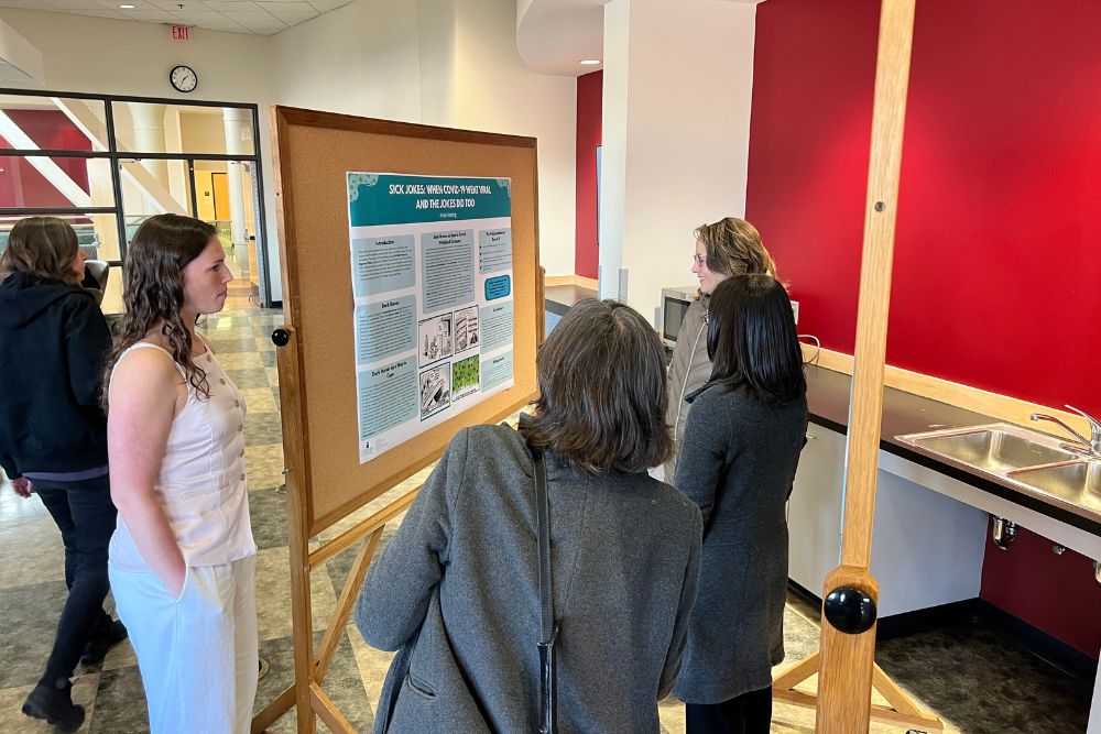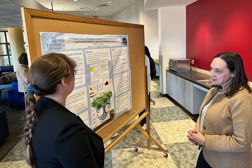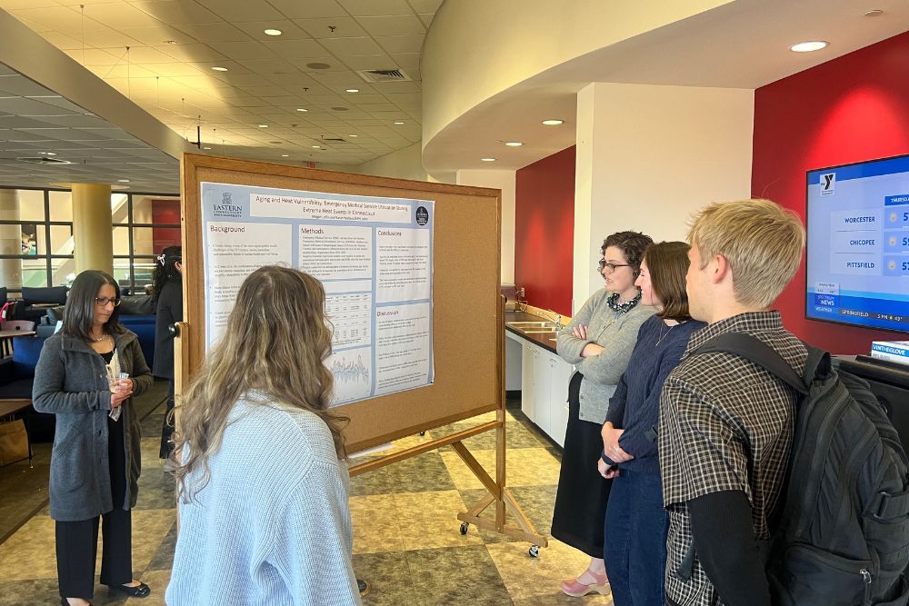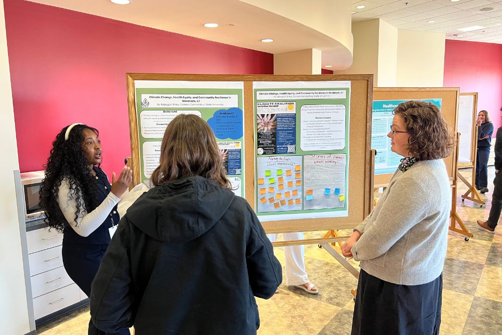 After the panel, six students presented research projects addressing public health issues, including climate change, health equity, aging, advocacy, and media influence, during a poster showcase and networking session.