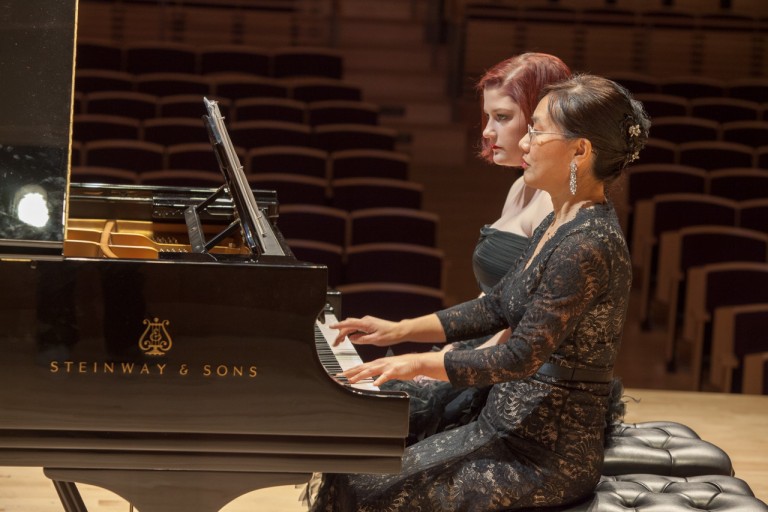 The idea for the concert was developed two years ago by Music Professor Okon Hwang upon learning that the Music Department would soon have two Steinway concert pianos at its disposal. “When I heard we would have two concert pianos I knew we had to use them in a unique and creative way,” said Hwang. “I wanted to find a way to celebrate the arrival of our new concert piano as well as the returning of our refurbished concert piano, a project which took a year to be completed.”