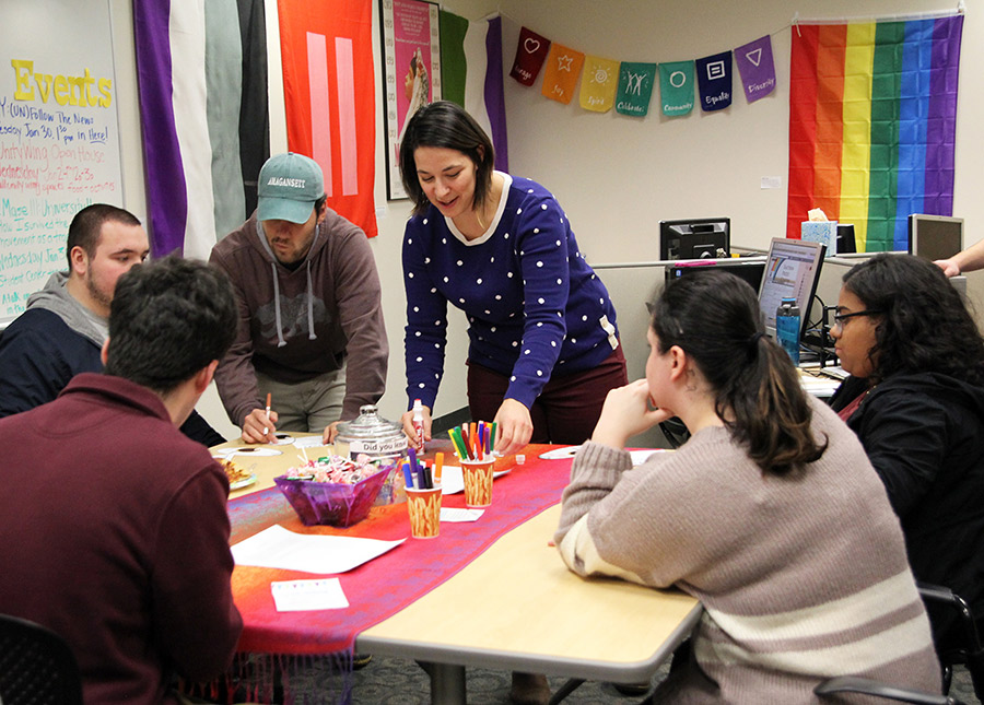 Consisting of the Pride Center, Women's Center and Intercultural Center, the Unity Wing creates a safe place for all students, something that was evident through the positivity-centric stations at the open house. Julissa Pabon, Intercultural Center graduate assistant, recognized the importance of dealing with academic stress as she sat at their "coloring relaxation" table. "You can grab a couple of pages and take it on the go, or you can sit and relax and color and talk about anything you want to," Pabon explained. "And we're going to give out tips on ways that we think you can best stay organized for the semester."