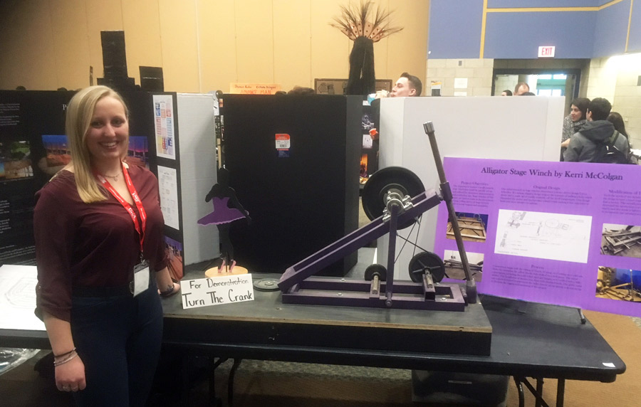 Among the Eastern students recognized at the festival was Kerri McColgan, who won a scholarship to attend the Stage Craft Institute of Las Vegas for her hand-operated alligator winch, which was used in “Thread City.”