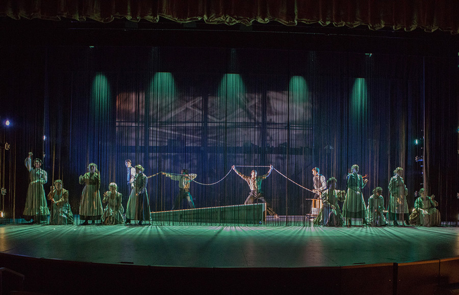 Directed by theatre professors Alycia Bright-Holland and Kristen Morgan, “Thread City” explored the ever-relevant topic of immigration with a dialogue-free play that blended choreographed movement, visual projections and folky-electronic soundscapes to convey a heartfelt and historically representative tale of immigration in America. “Thread City” is the popular name of Eastern’s hometown of Willimantic, CT, which is known for its rich history as the largest thread-manufacturing city in the United States in its heyday.