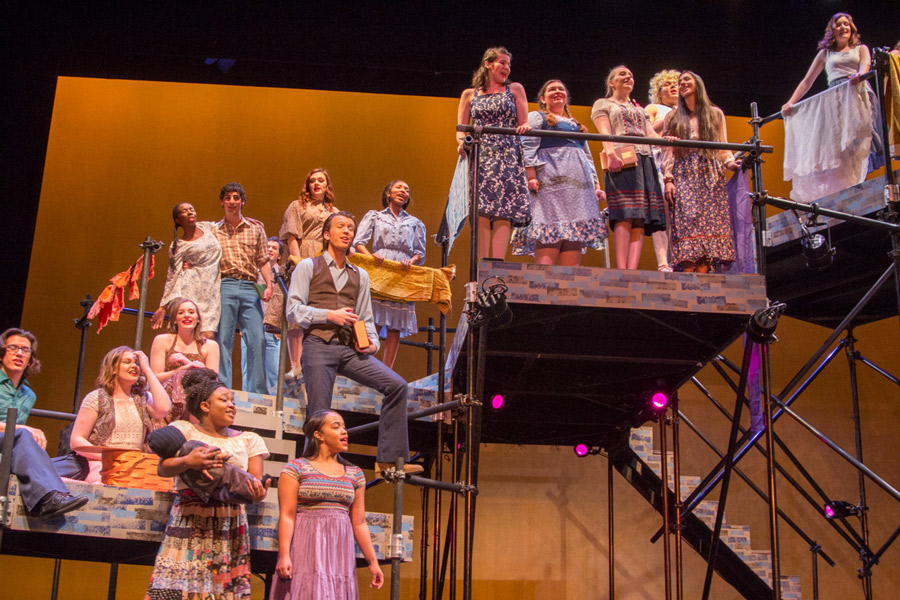 The creative team of “Thread City” included several students and adjunct faculty members Travis Houldcroft and Jen Rock, who received merit awards in the categories of Conceptual Collaboration, Excellence in Original Music Composition and Exceptional Choreography. Theatre Professor Anya Sokolovskaya was also acknowledged for her costume design for “Thread City.” “It was Anya’s costumes that so beautifully placed our actors in time and grounded our often-surreal production into a plausible reality,” said Chase Rozelle, professor of theatre.