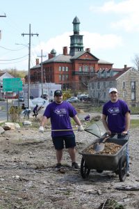 More than 100 students from Eastern Connecticut State University dispersed around Willimantic on May 28 for “Town Pride, Town Wide,” Eastern’s annual spring cleaning and beautification project. The students volunteered nearly 500 hours of time as they worked at more than 20 sites in collaboration with community partners.
