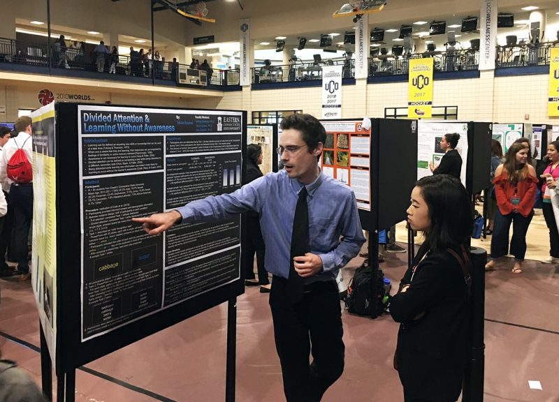 Eastern student Yohan Krumov ’18 presents “Divided Attention and Learning Without Awareness” at NCUR 2018.