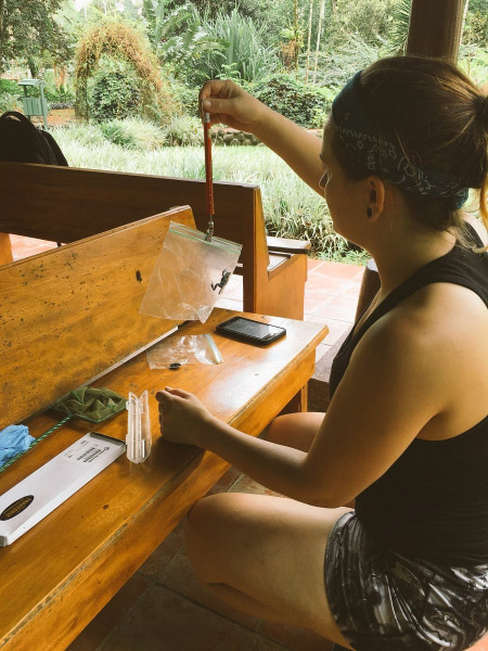 Biology student Jessica Purick and her group studied the effects of visual and olfactory cues on behavioral responses of the strawberry poison dart frog. “It was a very hands-on adventure with lots of hiking and sightseeing. It definitely made me want to do another research trip in the future and travel more in general.”