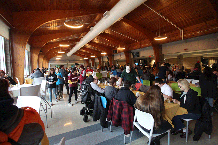 More than 500 local Willimantic residents enjoyed an early Thanksgiving meal at the 12th annual Day of Giving at Eastern Connecticut State University on Nov. 21.