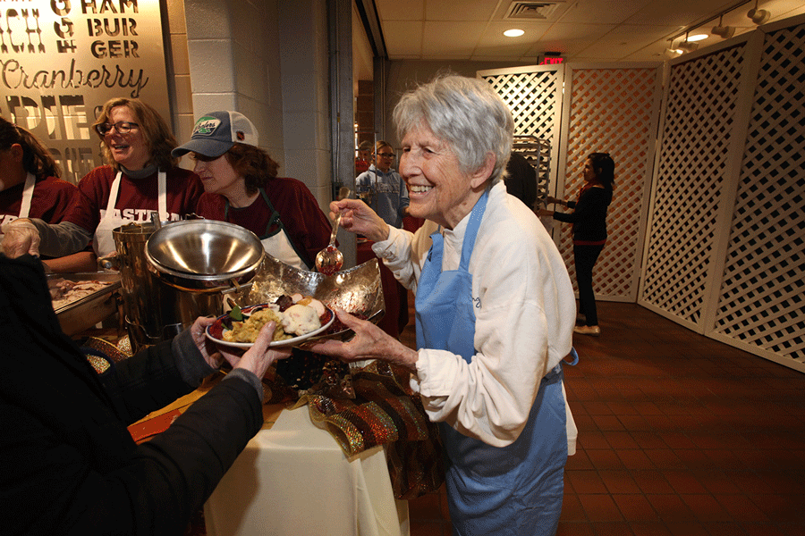 Amberlee Cubanski, the CCE student leader in charge of the event, said: “There are a lot of people who don’t have a hot meal on Thanksgiving. When they come here, there’s no discrimination, no judging. They can just come and have a nice meal. It’s really awesome to see everybody sit together, even if they don’t know who’s at the other end of the table.”