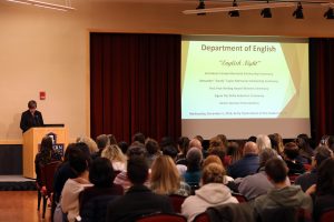 The English Department held its end-of-semester celebration of student excellence on Dec. 5 in the Betty R. Tipton Room. “English Night” featured an awards ceremony, induction into the Sigma Tau Delta honor society, and student presentations.