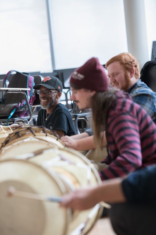 Perry originally got involved with the group to learn and practice percussion skills. Hwang took him to another level. “This Ensemble is great because of its accessibility. Very little previous musical skill or knowledge is required. Dr. Hwang did a fantastic job of introducing me to the genre during the class’s very first session. I quickly became interested in the cultural source materials that formed the genre of Samul Nori, as well as mastering the instruments. There is a great depth to explore when composing and performing. We’ve barely scratched the surface of what’s possible.”