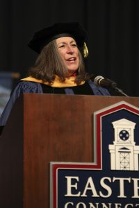 Other speakers at the Commencement exercises included Eastern President Elsa Núñez; Merle Harris, vice-chair of the Board of Regents for Higher Education; and Mark Ojakian, president of the Connecticut State Colleges and Universities System. Additional members of the platform party included Justin Murphy ’98, president of the ECSU Foundation; Father Laurence LaPointe; and other Eastern officials.