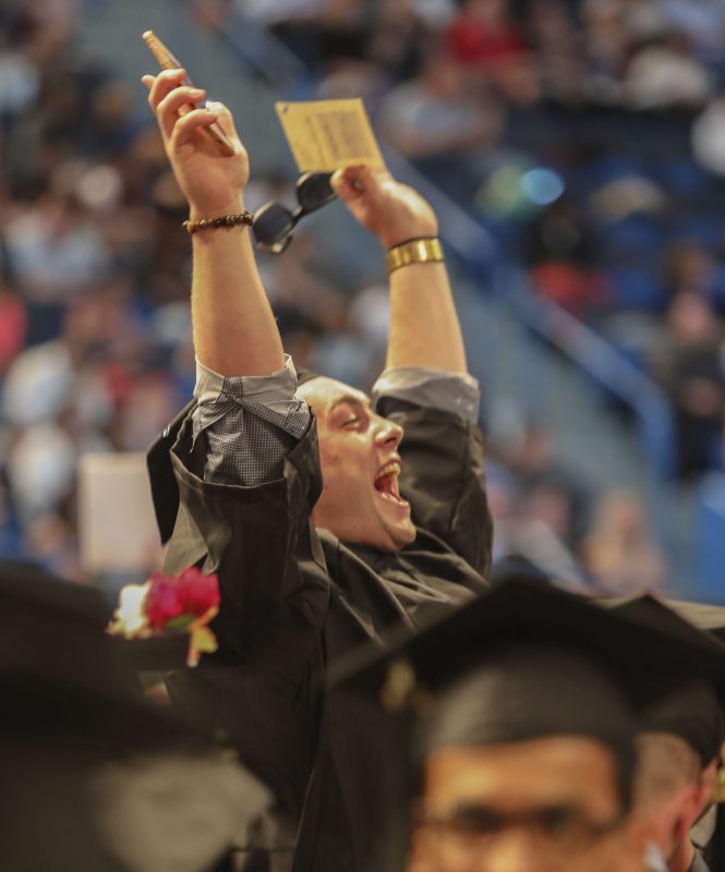 The annual graduation ceremony was held at the XL Center in Hartford on May 21, with more than 12,000 family members and friends cheering on their sons and daughters, brothers and sisters, as 1,175 undergraduates and 84 graduate students received their diplomas.