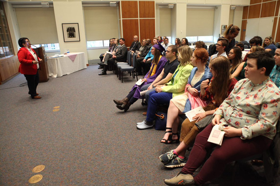 The fourth annual Lavender Graduation was held on May 9 to recognize seniors who exemplify the values of Eastern Connecticut State University and support the campus’s LGBTQ+ community. Emma Costa, Shannon Carroll, Rebecca Cyr, Angelique Greenberg, Priscilla Leon, Rebecca Loh, Paige Matheson, Bria Nicole Prentice and Zac Troiano were all recognized. In addition, Cyr received the LGBTQ+ Campus Community Award, while Prentice received the Academic Excellence Award.