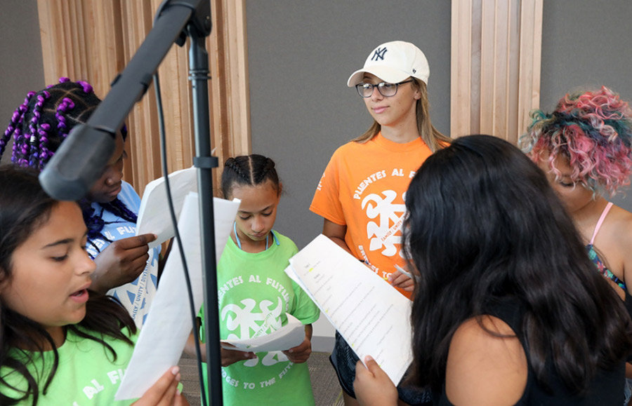 After finalizing the scripts, Communication Professor John Murphy helped the middle schoolers record the audio in Eastern’s radio station. “A universal constant was how surprised they were to hear a high-quality recording of their voice — to hear what they sound like to other people.” He added, “I loved seeing their spontaneity, their fearlessness and ability to act and play different parts.”