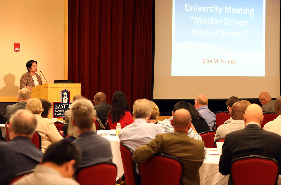 Núñez also listed ways the university can be “market smart.” She said Eastern can continue to offer new majors — citing recent additions such as health sciences, criminology and finance — as well as modernize existing programs to ensure they meet workplace needs.