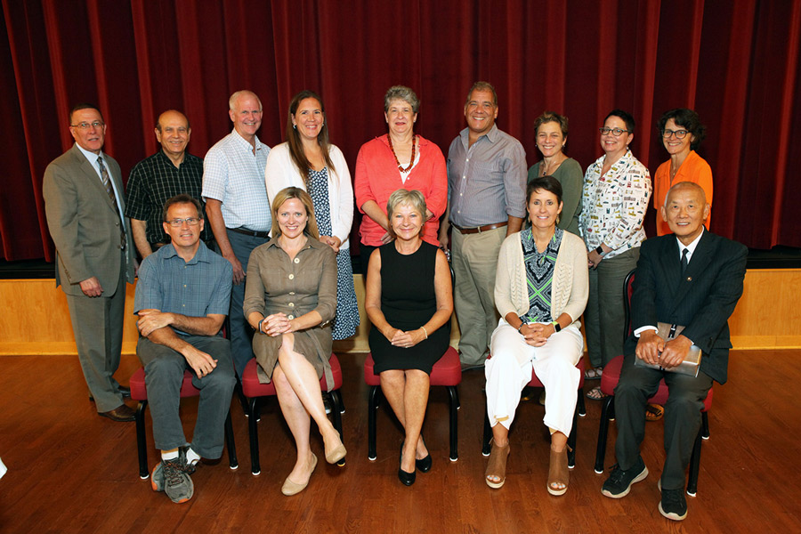Staff and faculty who were honored for years of service and retirement. Front row, left to right: Drew Hyatt (20 years), Kristalyn Salters-Pedneault (10 years), Jutta Ares (retirement), Denise Bierly (25 years), Weiping Liu (retirement). Back row: Walter Diaz (20 years), Mohd Rujoub (20 years), Jeffrey Danforth (retirement), Angela Bazin (20 years), Rita Malenczyk (25 years), David Pellgrini (20 years), Kim Dugan (20 years), Theresa Severance (20 years), Michelle Bacholle (20 years).