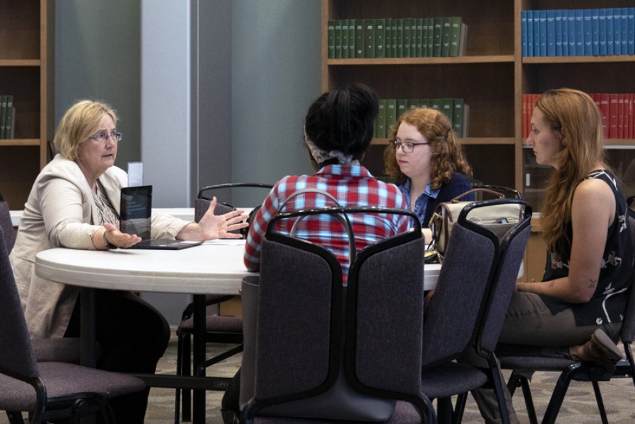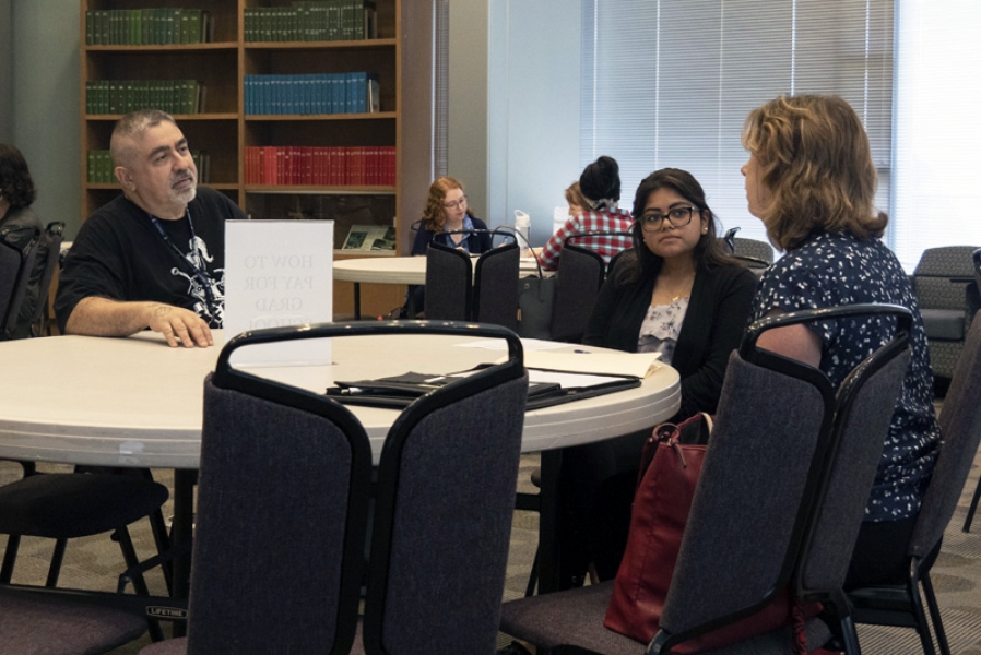 Julia DeLapp, director of the Center for Early Childhood Education, hosted a table focused on graduate school scholarships and fellowships. Katherine Wrana, associate director of financial aid, shared options on how to finance graduate school. Other tables covered the application process and standardized testing.