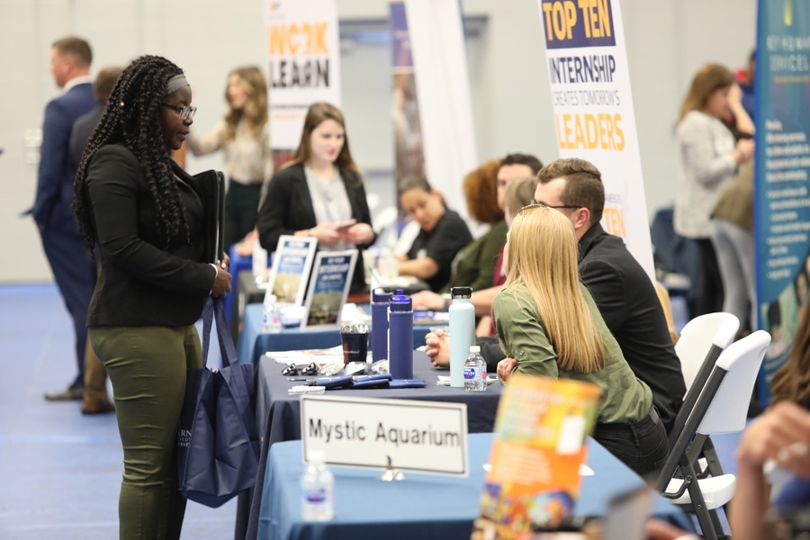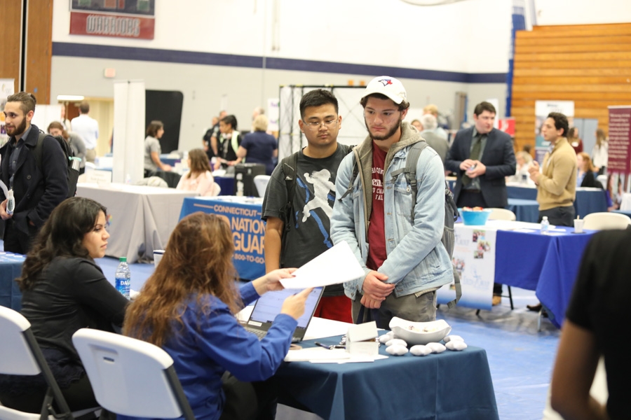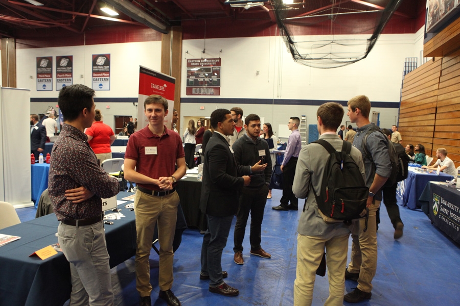 Eastern Connecticut State University’s Center for Internships and Career Development (CICD) hosted its fall Career and Internship Fair on Oct. 23. Held in the Geissler Gymnasium, the event had 85 companies in attendance with 360 students eager to speak with potential employers.