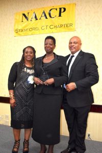 On Sept. 27, at the NAACP’s Annual Freedom Fund Dinner, the Stamford NAACP presented Eunice Matthews, professor of social work and coordinator of the Social Work Program at Eastern Connecticut State University, its prestigious Dr. Joyce Yearwood Humanitarian Award.