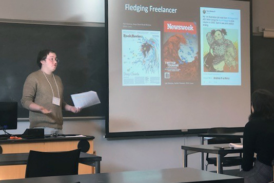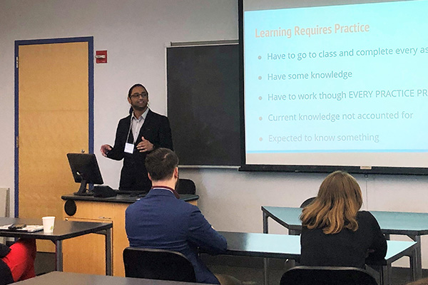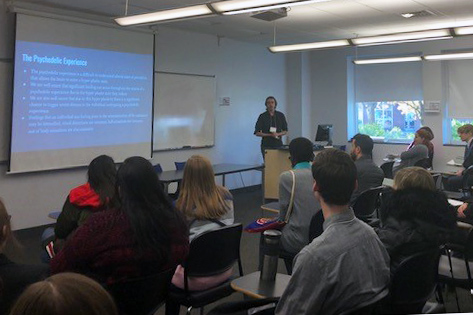 The students represented a variety of academic departments, from art to computer science, and presented on a range of topics, from emerging psychedelic medical treatments to the affect of childhood trauma on alcohol use. Psychology Professor Carlos Escoto accompanied the students on the trip to New Hampshire.