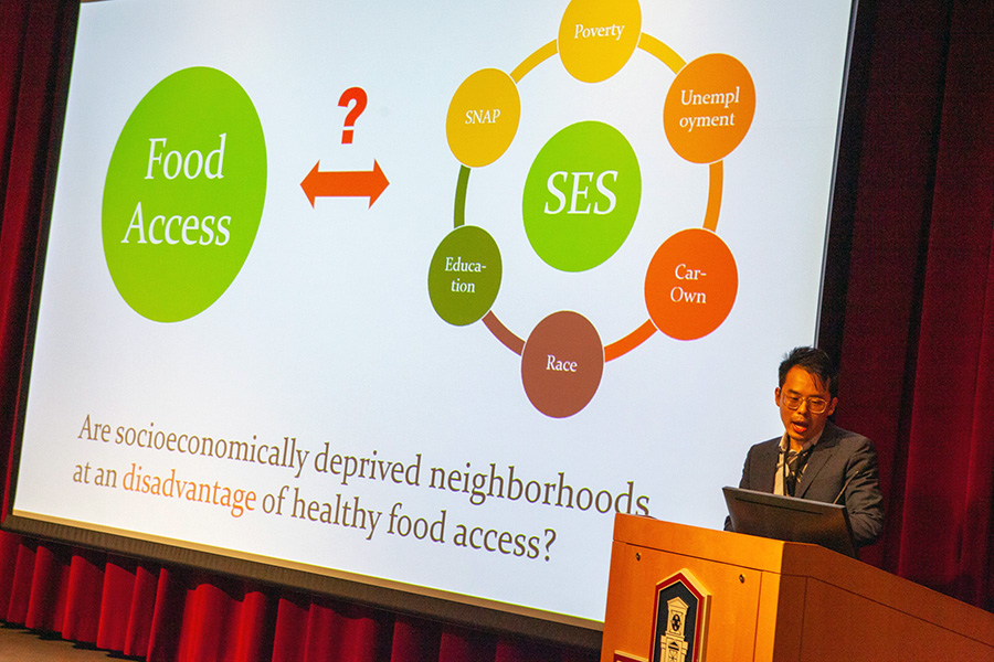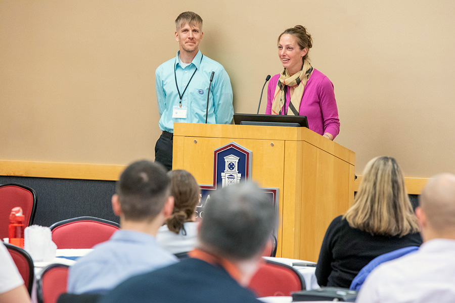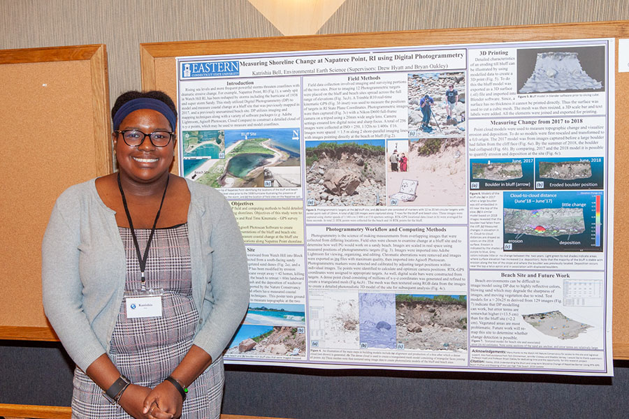 Environmental Earth Science Professor Bryan Oakley also presented at GIS Day, speaking on the topic, “Using GIS in Coastal Geology: Applied Projects from the Rhode Island Shoreline Change Special Area Management Plan.” “I’m a geologist, but I use GIS,” said Oakley, who’s been measuring storm surge damage, coastal erosion and sea-level rise over the past several years to track shoreline change in Rhode Island.