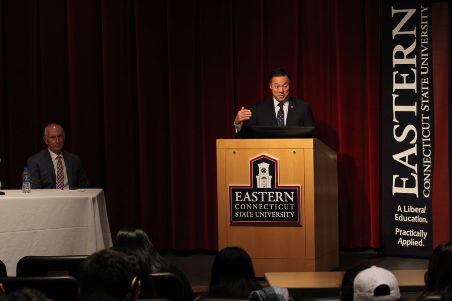 Attorney General Tong also reassured students and the Eastern community of his solidarity with the undocumented community. “A policy that completely ends DACA would have a profound effect on Dreamers and their families; the stakes could not be higher and that is why I am here with President Núñez and President Ojakian to say that we stand together as a firewall to protect and defend each and every one of you and your families.”