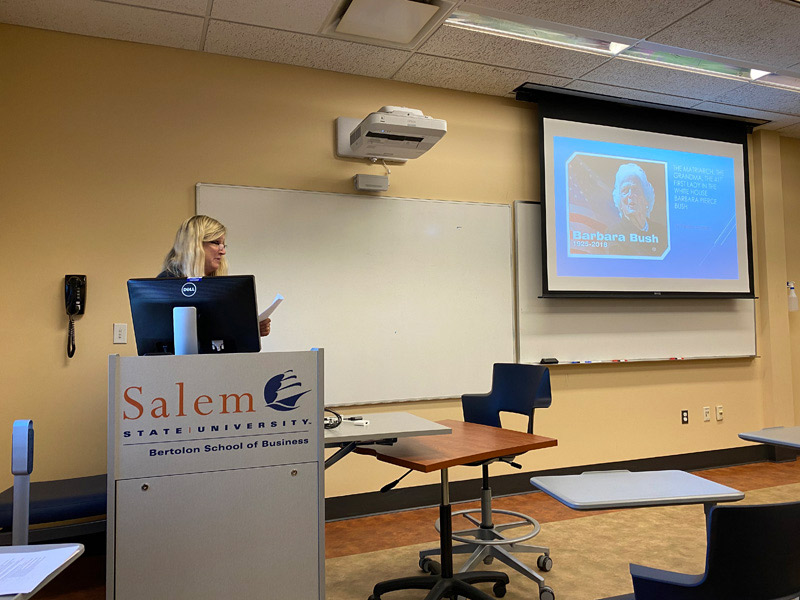 Advised by Assistant Professor Thomas Balcerski, the students worked all semester gathering information for their topics in preparation for their oral presentations. “They represented Eastern with professionalism and intelligence,” said Balcerski, when asked about his honor students. The students’ projects were “Dolley Madison: The Queen of Hearts,” “Sarah Polk: Membress of Congress,” “The Other Eleanor: Rosalynn Carter, An Overlooked First Lady” and “Barbara Bush: Matriarch & Grandma.”