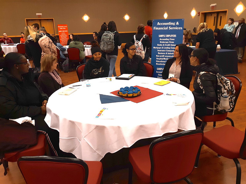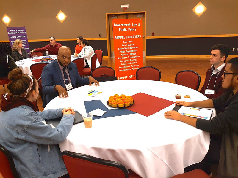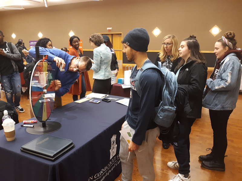 Young people go to college to earn a degree and prepare for careers, hopefully positioning themselves to be marketable enough to enter gainful employment. For freshmen, trying to figure out which major will fit their passion yet yield a reasonable return on their investment can create anxiety. On Nov. 14, Eastern Connecticut State University’s Office of Career for Internships and Career Development hosted the inaugural First-Year Career Exploration Expo in the Betty R. Tipton Room of the Student Center, with more than 100 freshmen in attendance.