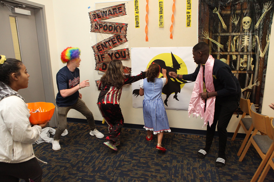 Hall Director Shawn Gilhuly and 34 student volunteers staffed the event. Activities included face painting, bean bag toss, crafts and “pin the broom on the witch.” There was also a snack and popcorn station, along with a movie for the children. The 135 attendees included both children and parents, and was “a great way to get kids excited for Halloween,” said Gilhuly.