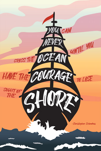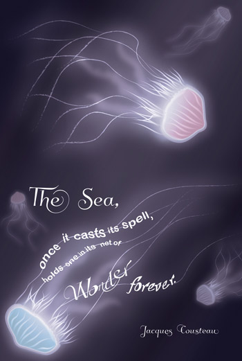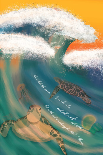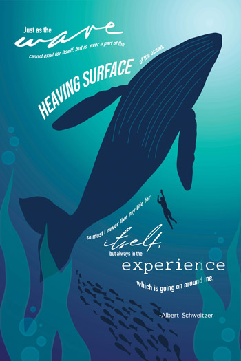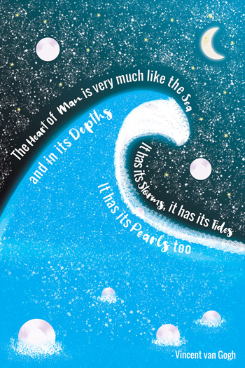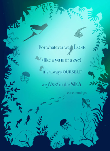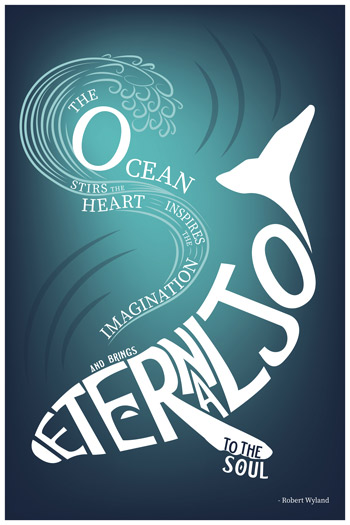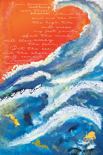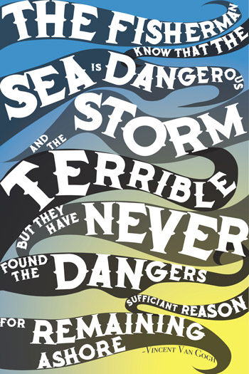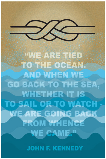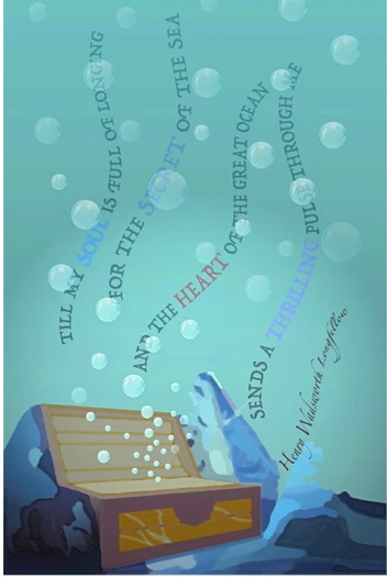 For Sous La Mer, students were tasked with creating large-scale posters, using evocative imagery and typographic designs to illustrate quotes about the sea from authors, statesmen, artists and philosophers such as Vincent Van Gogh, Herman Melville, John F. Kennedy and Kalil Gibran.