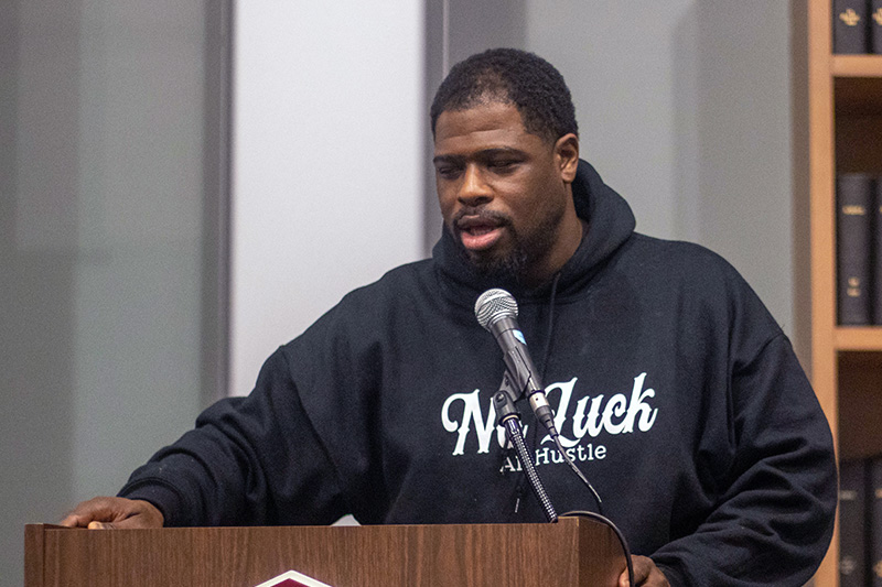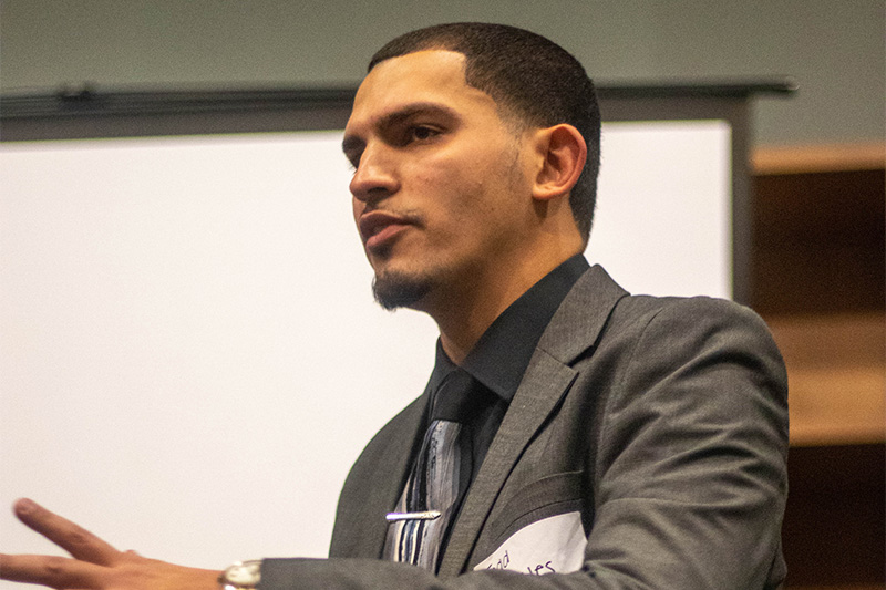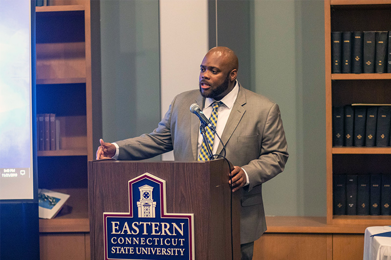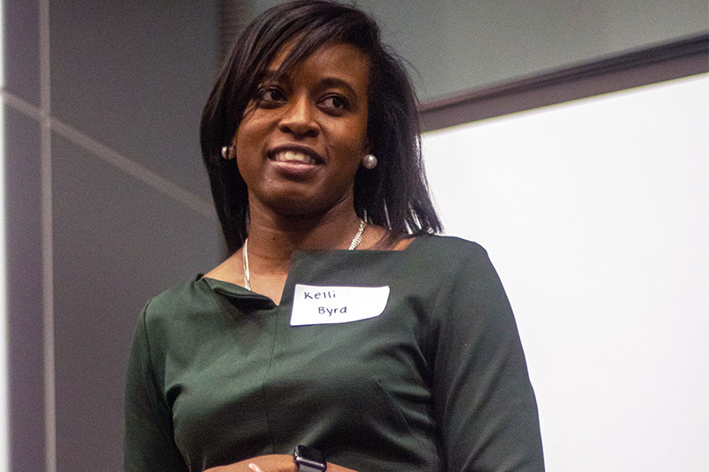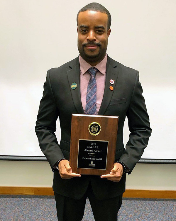 The alumni visitors included Todd Aviles ’14; Elijah A. Oliver ’07; Ashon Avent ’08; Eddie Brown ’19; and Kelli Byrd ’12. Each spoke of challenges they face and how they learned to manage their college experience with the help of resources such as Eastern’s Center for Internships and Career Development.