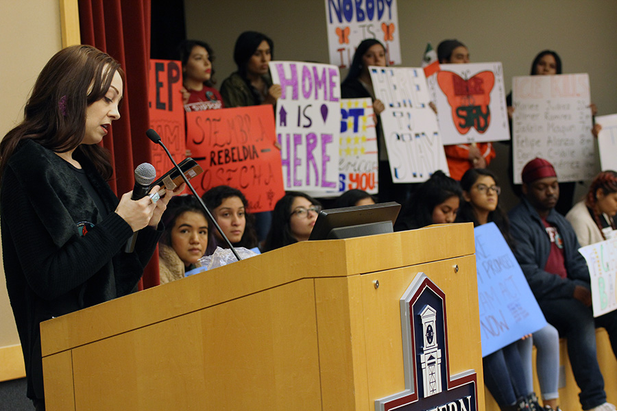 “Today we are fighting for all immigrant lives,” said Britney Acevedo-Corona, vice president of Freedom at Eastern. “Who are you fighting for?”