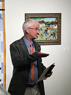 Irwin’s lecture complemented the current “Creating Dangerously: Art and Revolution” exhibition on display at the Art Gallery through March 12. Irwin used a rich photo archive of the lives of Haitian farmworkers — taken by renowned photographer Arthur Bacon — to provide a visual context for his talk.