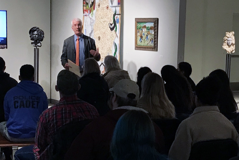 Darrell Irwin, visiting assistant professor of sociology at the University of Connecticut, gave a lecture on “The Roots of Haitian Migration” in Eastern Connecticut State University’s Art Gallery on Feb. 10. Nicolas Simon, assistant professor of sociology at Eastern, collaborated with Irwin on the talk.