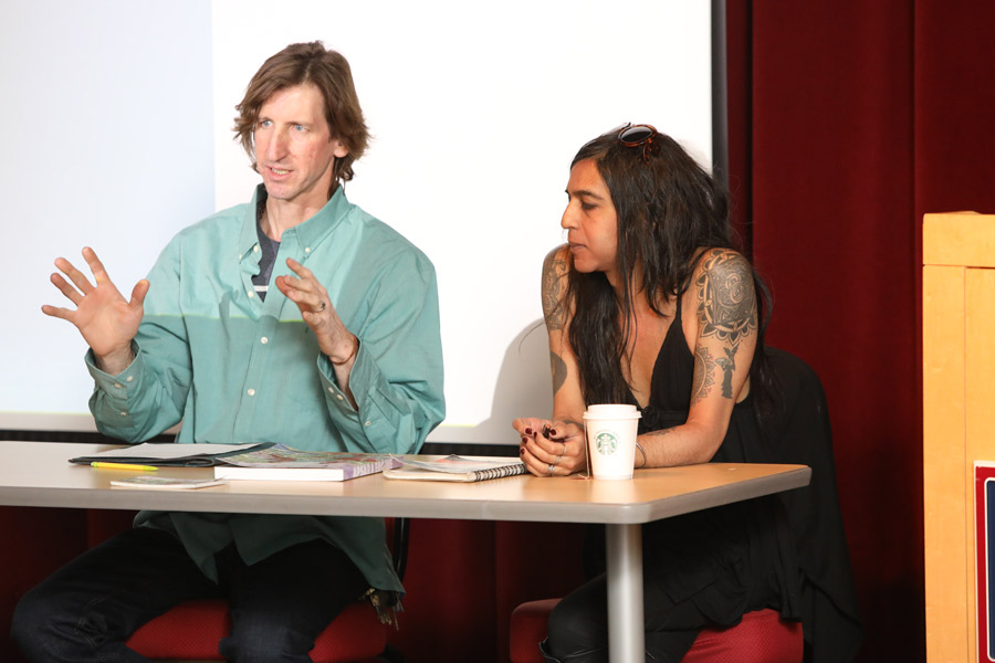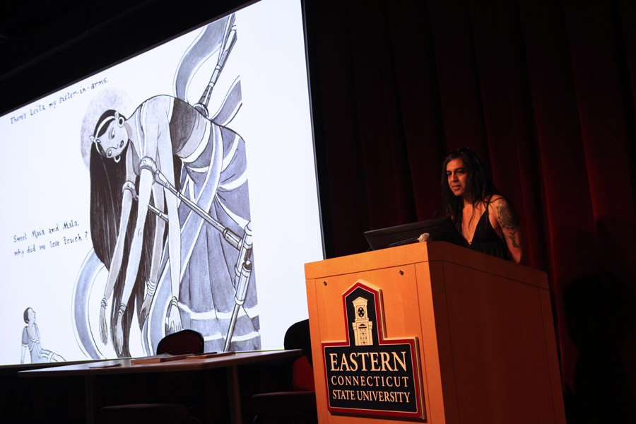 New York-based artist and writer Bishakh Som visited Eastern Connecticut State University on March 5 to read from her upcoming comic book “Apsara Engine,” which is set to go on sale on April 14. After the reading, Theater Professor James Holland facilitated a discussion on Som’s work and her illustrative and writing processes.