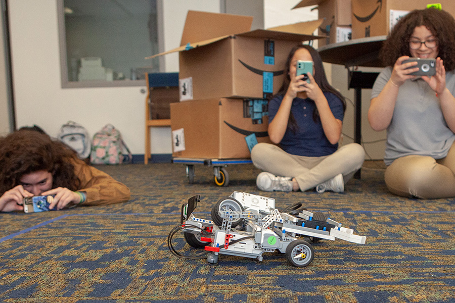 Concluding this block, the children put their robots to the test in a series of challenges. Animated by code, the robots navigated an obstacle course, drew with a marker and "battled" by pushing each other out of a ring.
