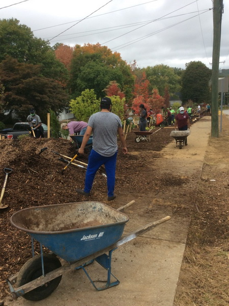 Eastern students on the four-day project included volunteers from the Center for Community Engagement as well as members of the MALES and FEMALES student clubs. They worked three-four hours each day alongside Garden Club volunteers. “We couldn’t have done it without them,” said Faith Kenton, organizer of the 325 Trees and Shrubs Project.
