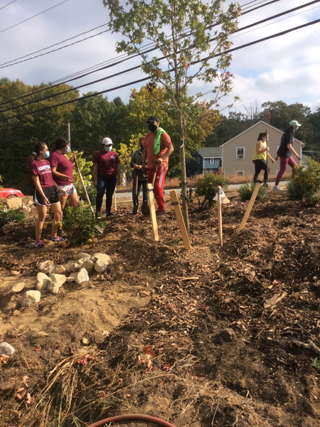 Over two weekends in September, approximately 30 student volunteers at Eastern Connecticut State University helped plant 50 trees and 120 shrubs in a 10,000-square-foot urban garden on High Street near campus.