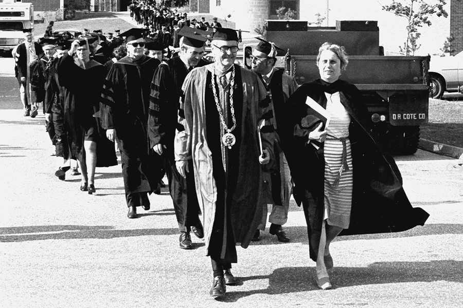 Dramatic change took place in the United States during Webb’s administration. The impact of the civil rights and women’s rights movements, as well as other cultural and social trends, could be seen across the country, as well as at Eastern. Campus activities and study abroad programs reflected the adventurous spirit of the times as well as student interest in such issues as the environment, women’s rights and affirmative action. A champion of students and faculty, Webb instituted “open door” office hours when people could visit him in the library.