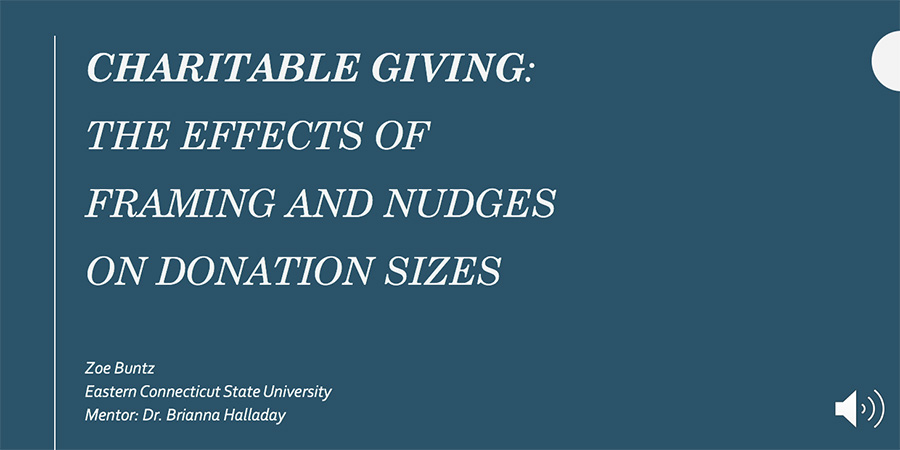 Buntz’s oral presentation is titled “Charitable Giving: The Effect of Framing and Nudges on Donation Sizes.” “Creating an entirely virtual presentation equipped me with new technological skills and confidence.”
