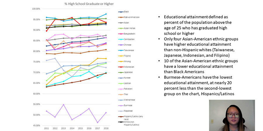 With the various takeaways of adapting to this virtual experience, one sentiment prevails for most of the students — gratitude. Senior Tara Nguyen is a sociology major whose research explores the achievement gap within the Asian-American community. “Given our current circumstances, I am really grateful for the opportunity to be able to present at this conference despite everything going on in our world right now.”