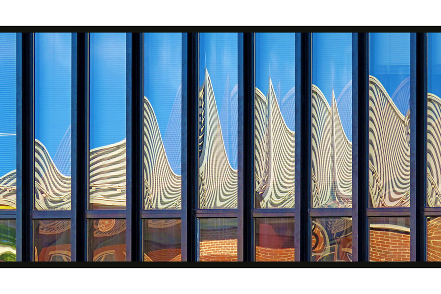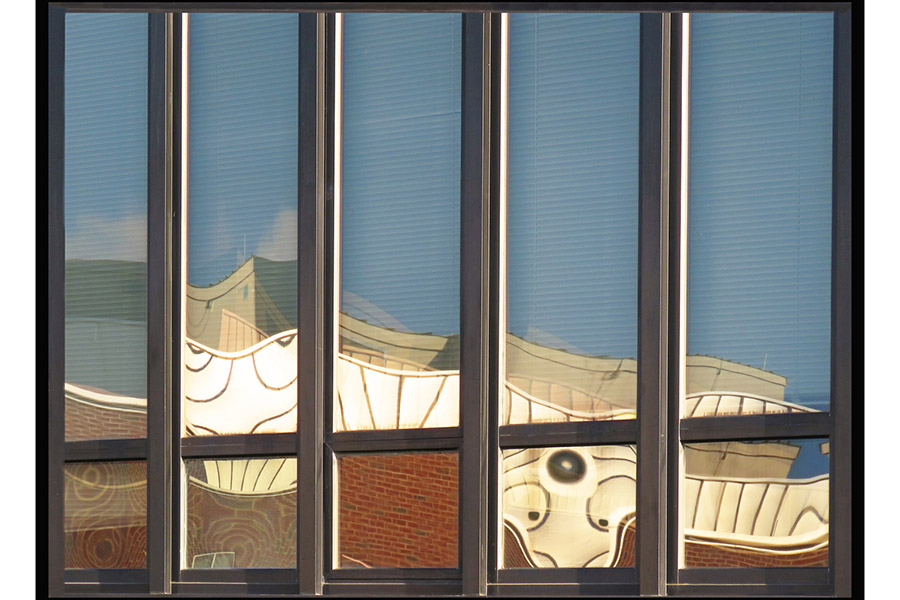 The photographs, which consist of reflections on campus building windows, were taken to highlight the strange shift in “normal” that the entire world has experienced in the past year.