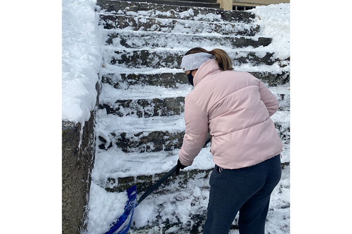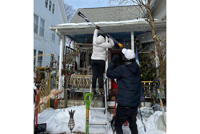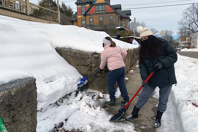 Fifteen student volunteers with the Center for Community Engagement shoveled snow for local residents over the weekend. The volunteers shoveled driveways and front porches at six homes in the hill section of Willimantic.