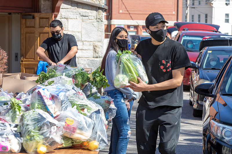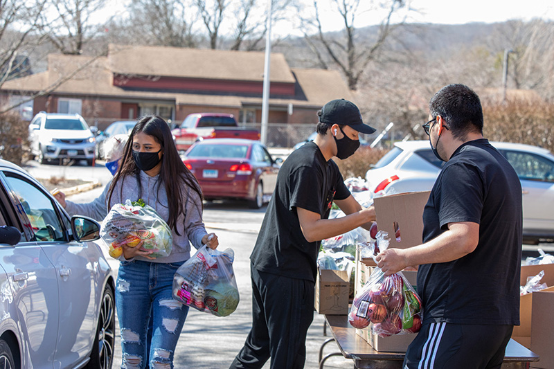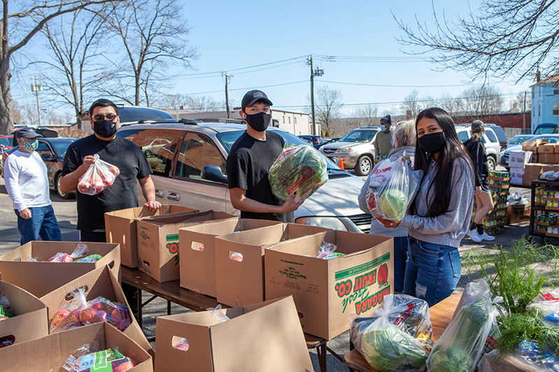 Eastern Connecticut State University’s Center for Community Engagement (CCE) deployed 10 student volunteers to St. Joseph’s Church in Willimantic on March 23 to assist with the Connecticut Food Bank’s mobile food pantry. From 9 a.m. to 1 p.m., the students helped package and distribute more than 3 tons of food to 140 local families, according to Reverend Rick Haverly. This was the second of three service projects with the mobile food pantry this semester. The final event is April 27.