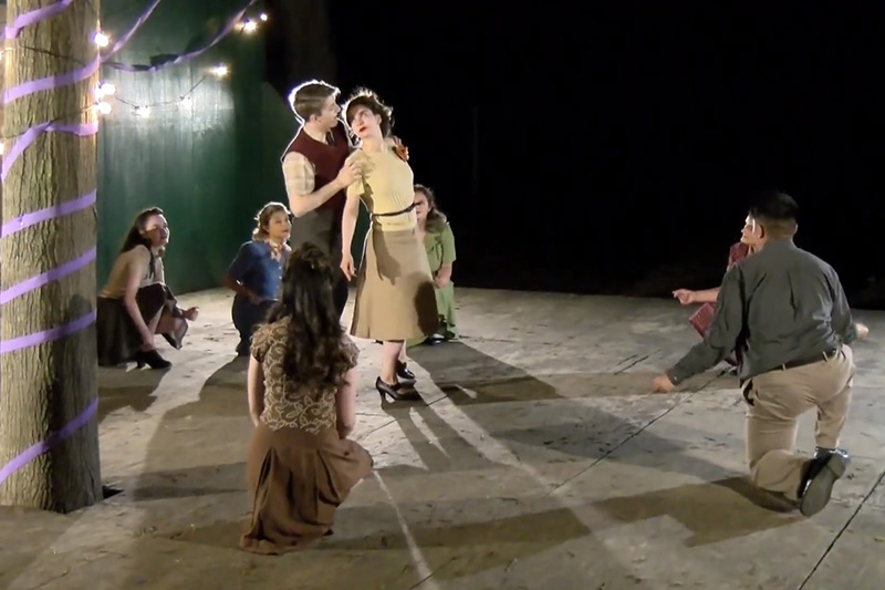 Although the original plan was for the show to be performed on stage, due to COVID-19, the two directors decided to adapt the show into a film. Filmed entirely outside, students were adorned in timely costumes made in large part by Eastern professor and costume designer Anya Sokolovskaya. Along with the costumes, the location of the performance allows for viewers to immerse themselves into the setting. Filmed at Holiday Hills in Mansfield, performers had ample space to move and interact without COVID-19 restrictions.