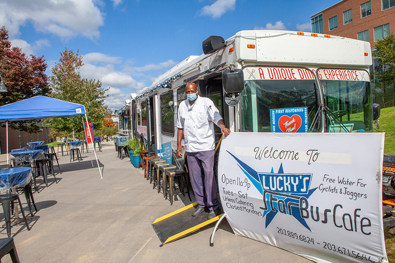 With nine tables, all including different activities centered around interpersonal violence signs and awareness, students could fill out “passports” that were distributed to students attending the event. The first 100 students to complete their passports received a lunch ticket for a free meal from Lucky Larry’s food truck. Larry, head of the family-owned and operated truck, donated his time and resources to the cause to provide students with an alternative dining experience. Like Wiley, Larry is from the New Haven area, and wanted to participate in her event.