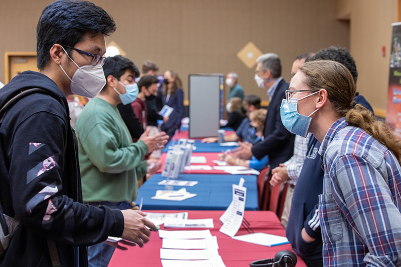 With the tables spread to maintain social distancing protocols, students flowed freely from table to table to hear more about programs and credit requirements. “I found it really informative and helpful,” said Skylar Mink, a first-year student majoring in computer science. Looking to pursue a double major in English, Mink appreciated having all of the credits laid out for her.