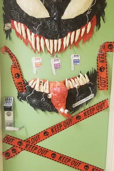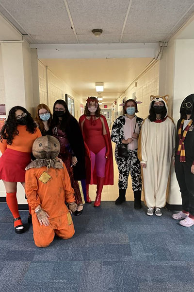 Eastern Connecticut State University embraced the Halloween spirit in a number of ways this fall semester. Across residence halls, student organizations and arts events, students, staff and faculty participated in costume contests, pumpkin painting and door decorating. Student organizations like FEMALES and Freedom at Eastern had costume parties, music students dressed up for a percussion recital and more.