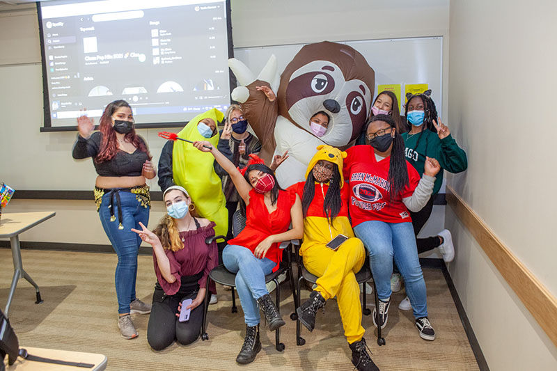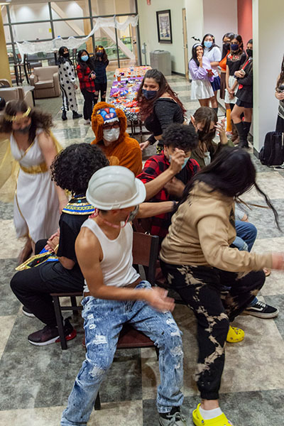The student organization FEMALES celebrates Halloween with a costume contest.