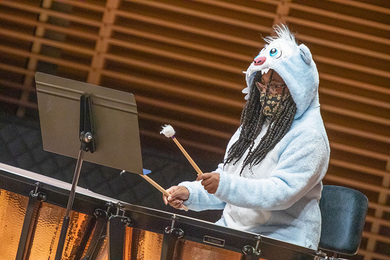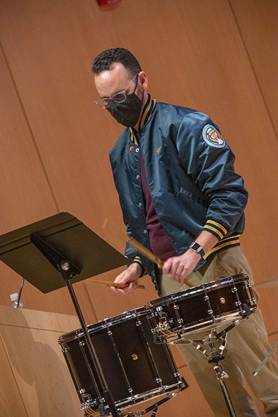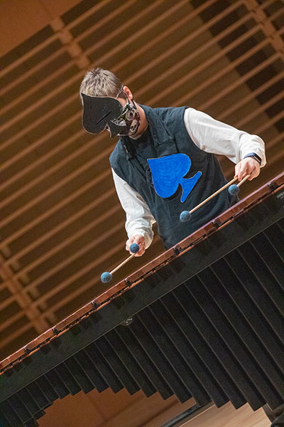 Professor Jeff Calissi performs in a percussion recital on Halloween weekend.