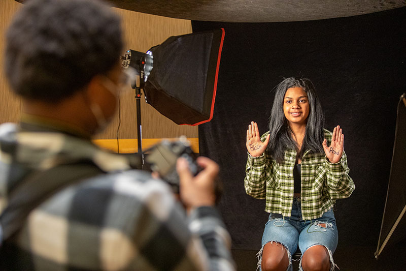 The campaign included tabling in the Student Center, where visitors could learn more about the project and participate in activities. “One way that we grabbed our students’ attention to participate is by having a poster titled ‘Take a story, leave a story’ that allowed students to randomly select a story, read it, get inspired and then leave theirs,” said Zaldivar. “To help them write their stories, we asked the question: ‘What is an identity or experience that you want to share with Eastern?’”